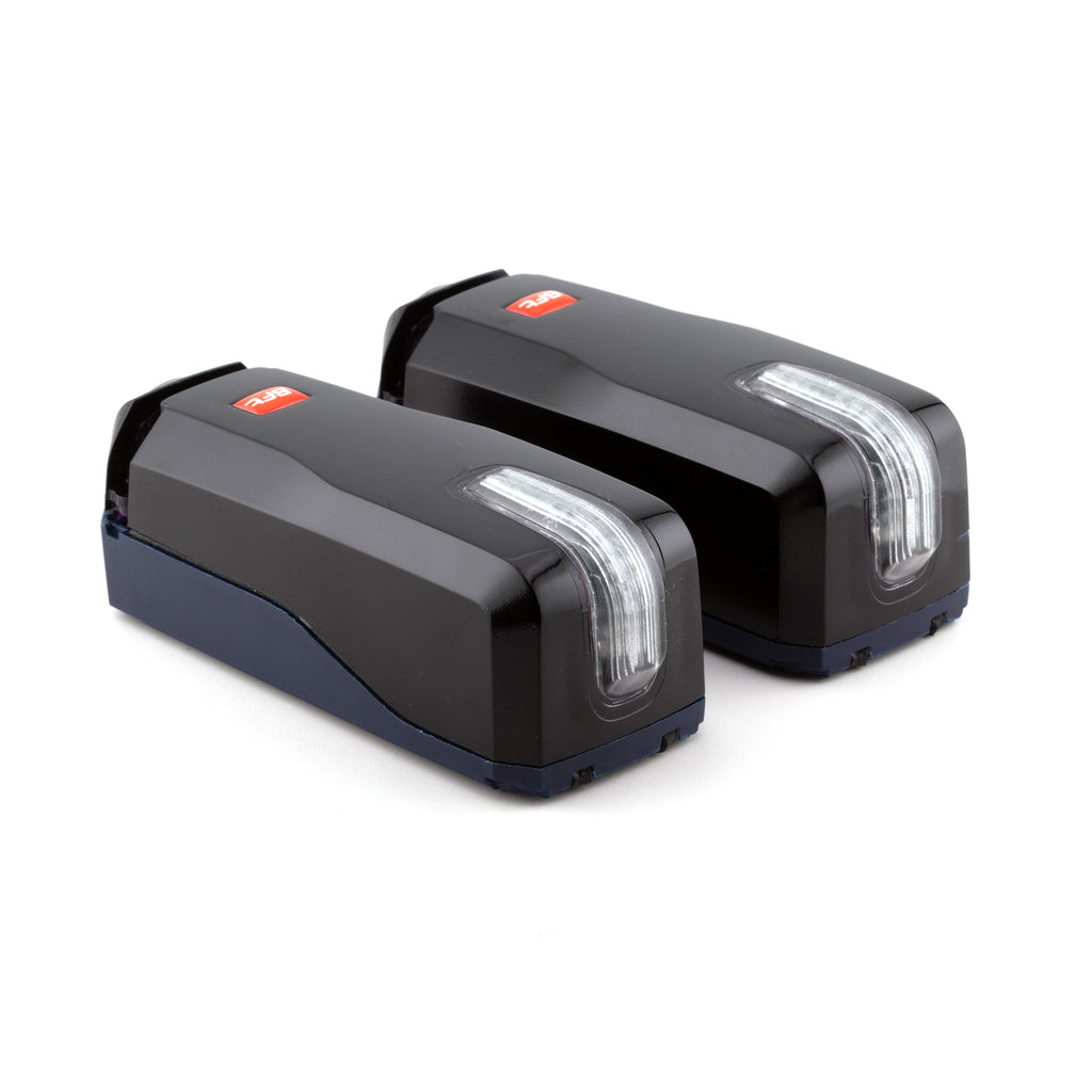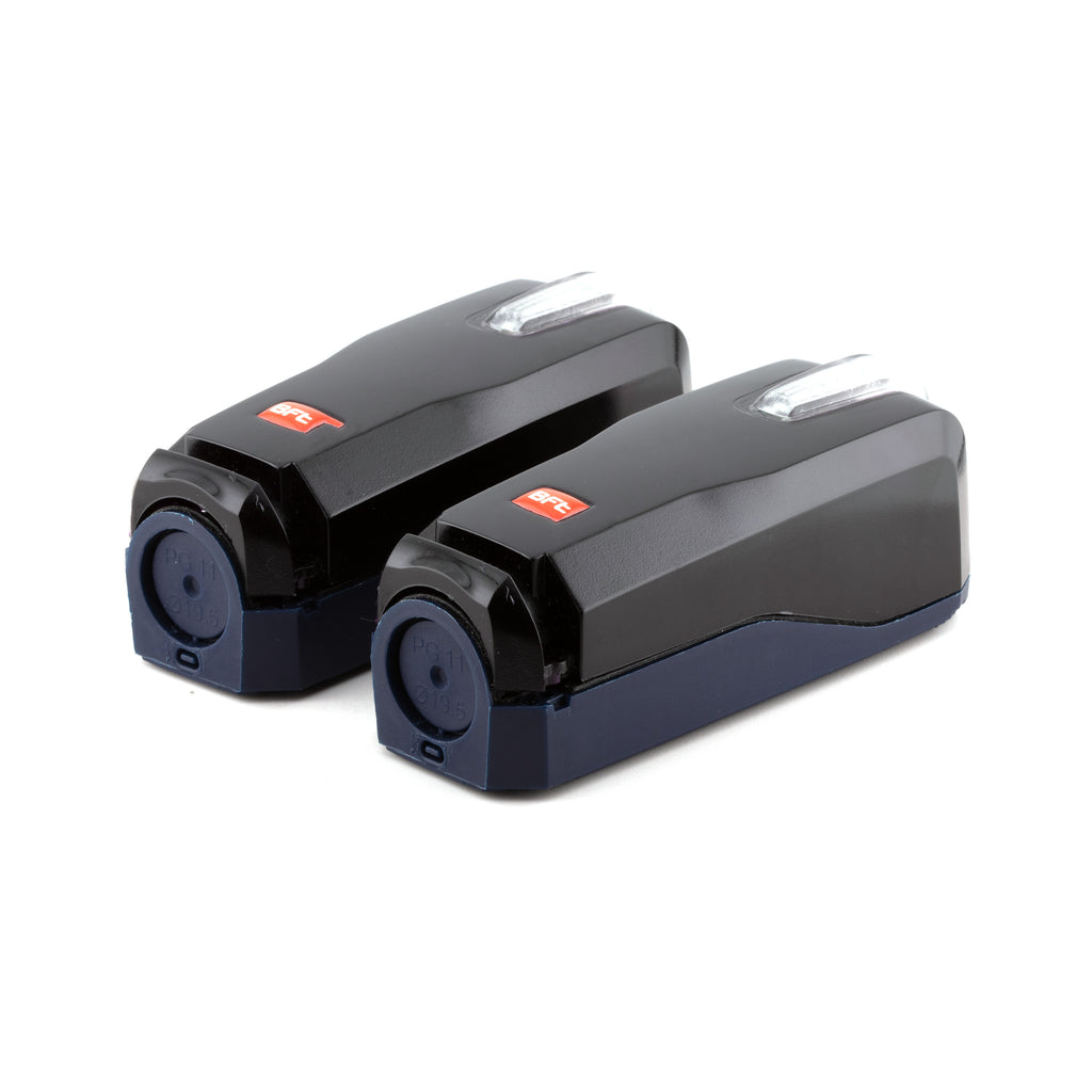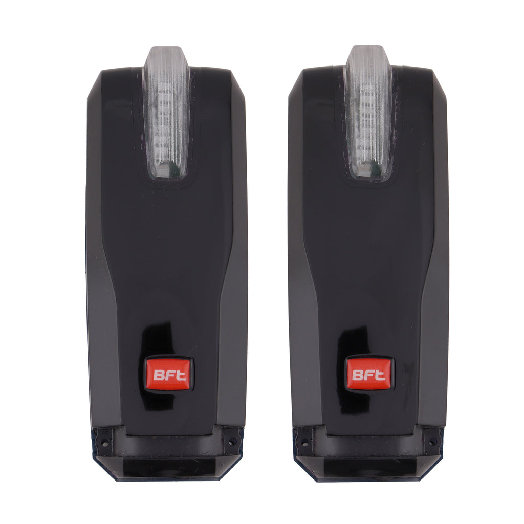 Pair of adjustable photocells with integrated flashing light. Possibility of directing the beam 40 ° horizontally and 10 ° vertically. IR signal synchronized to prevent any risk of blinding. Range 30 m. Power supply 24 V ac/dc. For external application.